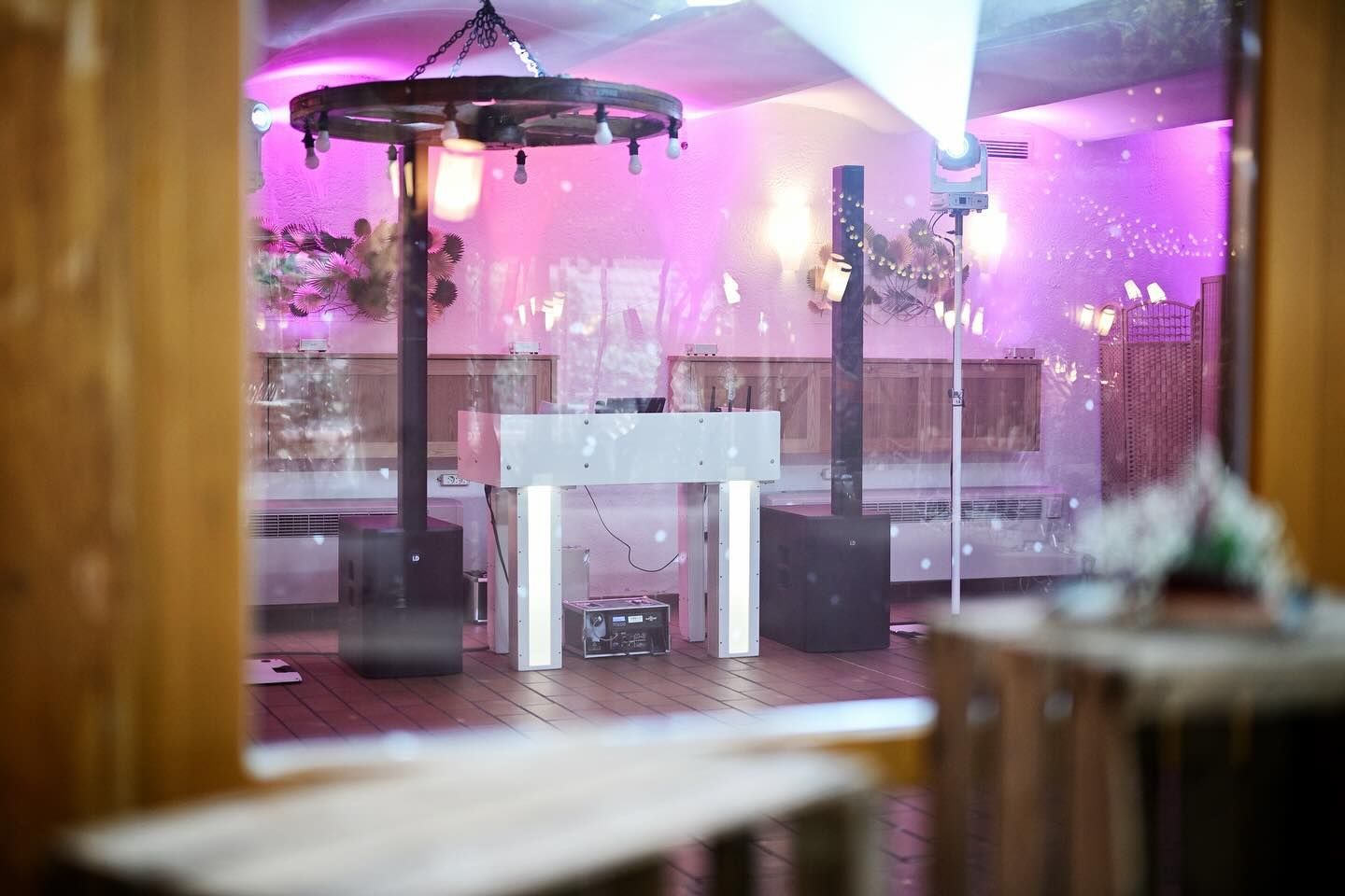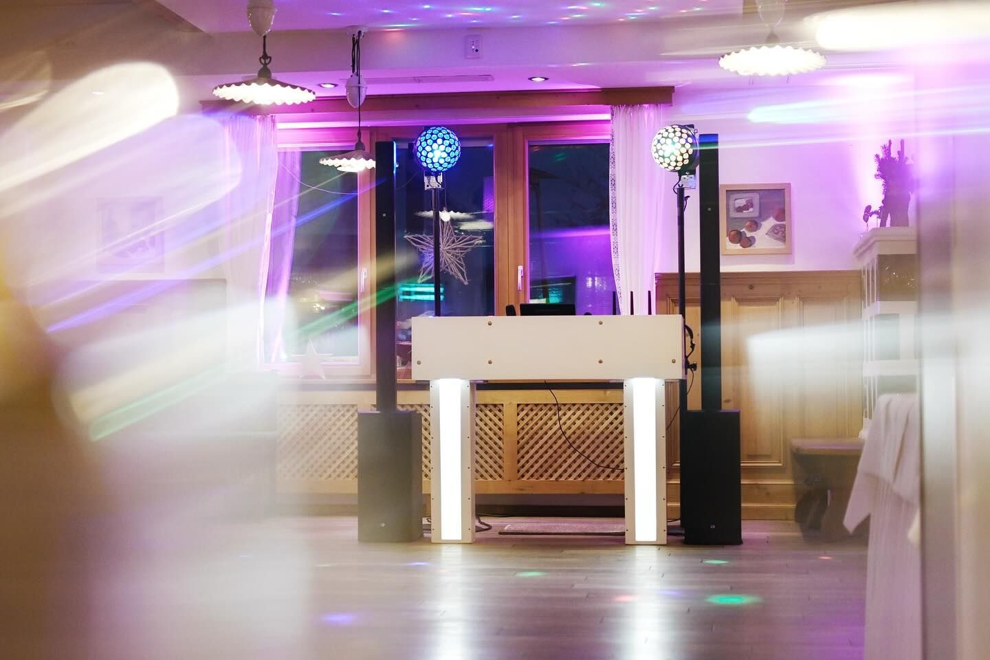 In der Mitte meines Setups befindet sich der ästhetische DJ- Tisch, den ich sowohl selbst entworfen als auch eigenhändig gebaut habe und als Alleinstellungsmerkmal in der Eventszene sowohl für ein einzigartiges Erscheinungsbild sorgt, als auch mit dem hochwertigem Equipment den Pegel der Zeit widerspiegelt.
